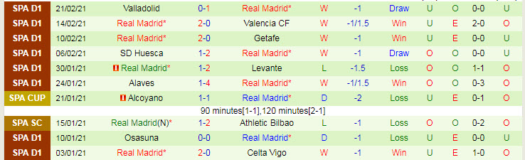 + Thống kê 10 trận gần nhất của Real Madrid