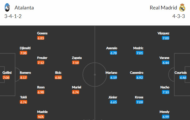 Đội hình dự kiến Atalanta vs Real Madrid:
