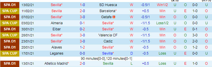 + Thống kê 10 trận gần nhất của Sevilla