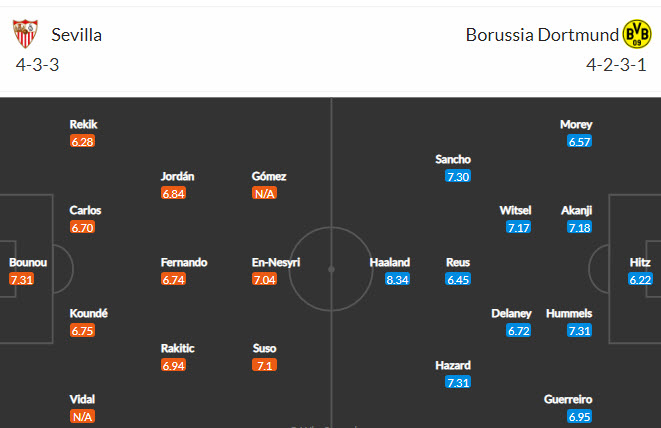 Đội hình dự kiến Sevilla vs Dortmund: