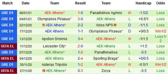 + Thống kê 10 trận gần nhất của AEK Athens
