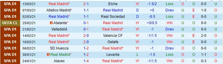 + Thống kê 10 trận gần nhất của Real Madrid