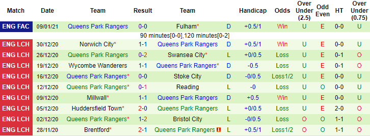 Bên phía đối diện, QPR vẫn đang trên đà sa sút. Đã 10 trận liên tiếp QPR không biết đến mùi chiến thắng (thua 5, hòa 5). Trên sân khách 6 trận trước đso tại giải hạng nhất Anh, QPR thua 3, hòa 3 và để thua 4 trận theo kèo châu Á.