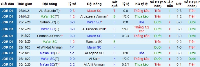 Sau 10 trận không thắng liên tiếp, trong đó có tới 8 trận hòa và để thua 2 trận, ở vòng đấu gần nhất Ma'an đã có được chiến thắng 3-0 trước Al Sareeh. Tuy nhiên trên sân nhà Ma'an cũng đã không thắng trong 6 trận gần đây với 4 trận hòa và để thua 2 trận.