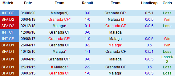 + Lịch sử đối đầu Malaga vs Granada