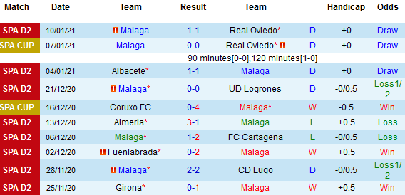 + Thống kê 10 trận gần nhất của Malaga