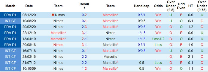 Phong độ và thống kê đối đầu Marseille vs Nimes gần đây
