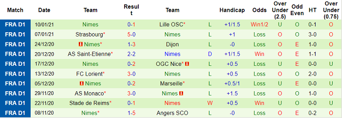 Trước màn so tài với Marseille, Nimes trải qua chuỗi trận đầy tệ hại. Họ không thắng cả 9 vòng gần nhất và thua tới 8 trong số này.