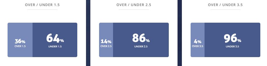Bên cạnh đó, cũng xin chia buồn với những ai yêu thích lối bóng đá tấn công khi siêu máy tính Ygeteb cũng không tin tưởng vào trận này sẽ là một trận cầu mãn nhãn giành cho giới hâm mộ môn thể thao vua. Cụ thể hơn nữa, Ygeteb đã đặt ra độ khả thi của cửa Under 2.5 (dưới 3 bàn thắng) là rất cao lên tới 86% độ tin cậy và Under 3.5 (dưới 4 bàn thắng) là gần như tuyệt đối với 95% độ khả thi.