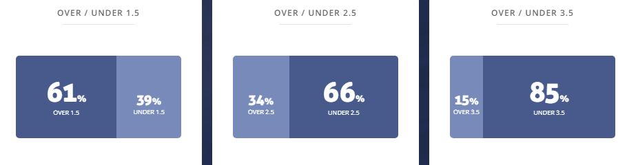 Thêm vào đó, cũng xin chia buồn với những ai yêu thích lối bóng đá tấn công khi siêu máy tính Ygeteb cũng không tin tưởng vào trận này sẽ là một trận cầu mãn nhãn giành cho giới hâm mộ môn thể thao vua. Cụ thể hơn nữa, Ygeteb đã đặt ra độ khả thi của cửa Under 2.5 (dưới 3 bàn thắng) là khá cao với 66% độ tin cậy và Under 3.5 (dưới 4 bàn thắng) là gần như tuyệt đối với 85% độ khả thi.