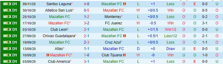 + Thống kê 10 trận gần nhất của Mazatlan