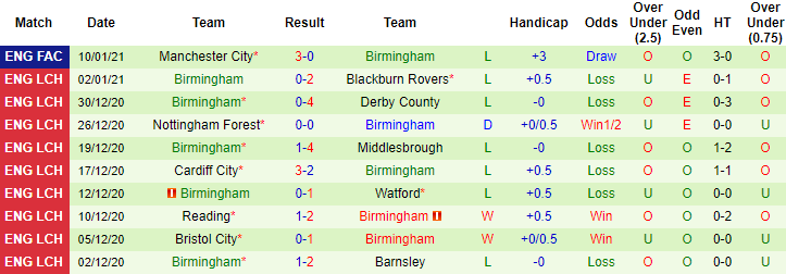 + Thống kê 10 trận gần nhất của Birmingham