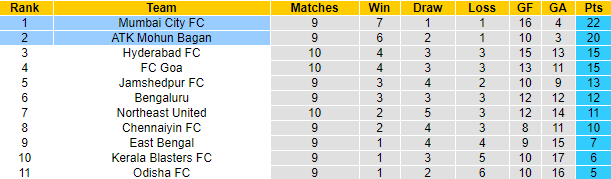 Mumbai City đang dẫn đầu bảng xếp hạng giải VĐQG Ấn Độ với 22 điểm sau 9 trận. Trận đấu sắp tới Mumbai City chỉ phải đối đầu tân binh mới thăng hạng Mohun Bagan trên sân trung lập. Vì vậy về mặt lý thuyết, Mumbai City mang đến nhiều hứa hẹn vào khả năng giành chiến thắng. Tuy nhiên, thực tế thì Mohun Bagan mới là đội bóng được giới chuyên môn tin tưởng.