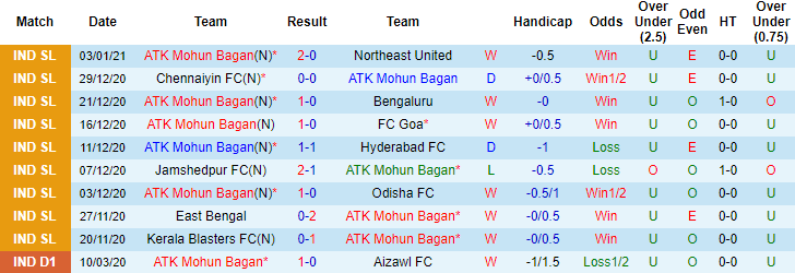 + Thống kê 10 trận gần nhất của Mohun Bagan