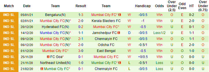 + Thống kê 10 trận gần nhất của Mumbai City