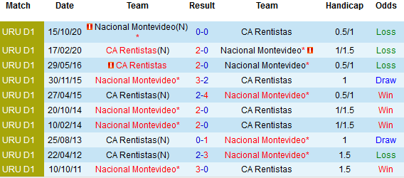 + Lịch sử đối đầu Nacional vs Rentistas