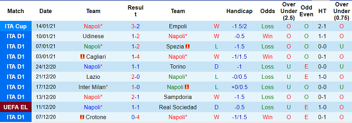 Ở trận đấu gần nhất thuộc khuôn khổ Serie A, Napoli đã đánh bại Udinese ngay trên sân khách với tỷ số 2-1. Một trong 2 bàn thắng của Napoli được thực hiện bởi Lorenzo Insigne.