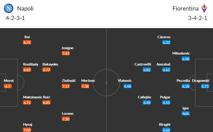 Với sự trở lại của Dries Mertens, Napoli sẽ như ‘hổ mọc thêm cánh’. Nhưng như thường lệ, Lorenzo Insigne mới là niềm hi vọng số 1 trên hàng công của CLB xứ Naples. Insigne đã ghi bàn trong 3/4 lần so tài gần nhất với Fiorentina. ‘Cái duyên’ này được chờ đợi sẽ tiếp tục ‘bén’ vào Chủ nhật để giúp Napoli đánh bại Fiorentina - đối thủ cũng đang trên đà ‘hồi sinh’.