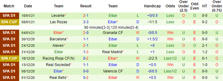 + Thống kê 10 trận gần nhất của Eibar