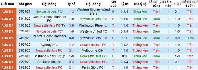 + Thống kê 10 trận gần nhất của Newcastle Jets