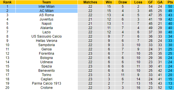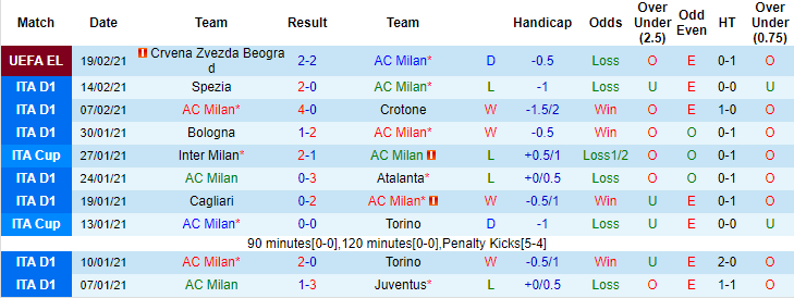 Sau khi liên tục dẫn đầu bảng xếp hạng Serie A 2020/21, đến vòng 24, AC Milan đã chính thức mất vị trí số 1 vào tay Inter Milan. Thất bại trước Spezia với tỷ số 0-2 hôm 14/2 vừa qua cho thấy rõ hạn chế của AC Milan khi họ không có được một lực lượng đủ dày để giữ phong độ cao trong khoảng thời gian dài. Rạng sáng 19/2 vừa qua, AC Milan tiếp tục gây thất vọng khi để Crvena cầm hoà 2-2 ở lượt đi vòng 1/16 Cúp C2 châu Âu.