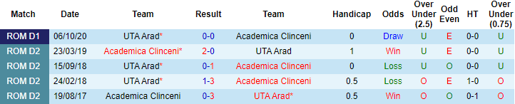 Phong độ và thống kê đối đầu Academica Clinceni vs UTA Arad