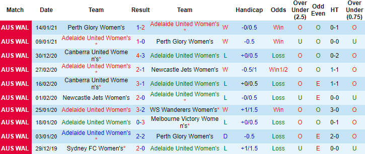 Trận đấu sắp tới Adelaide Utd (W) tiếp tục hứa hẹn vào khả năng mang về niềm vui cho người hâm mộ. Trên sàn giao dịch Melbourne City (W) chỉ chấp -1/2 theo handicap, mức chấp thấp nhất trong lịch sử đối đầu.