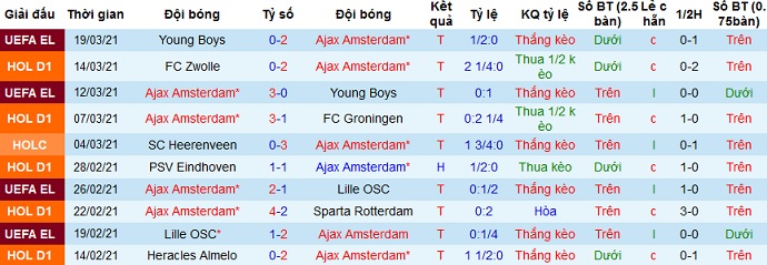 + Soi tỷ lệ kèo châu Á: Rõ ràng là hai đội quá chênh lệch về đẳng cấp cũng như phong độ, không những thế Ajax còn được thi đấu trên sân nhà nên không có gì phải bàn cãi khi họ được đánh giá là đội cửa trên. Có điều kèo chấp đang ở mức rất cao là -3,25 và còn có xu hướng tăng lên -3,5.
