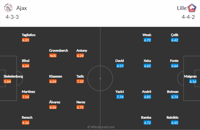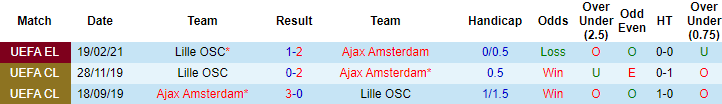 Ajax tiếp tục cho thấy họ là khắc tinh thực sự của Lille. Trận đối đầu ở lượt đi vòng 1/16 Europa League mùa này, Ajax đánh bại Lille với tỷ số 2-1 ngay trên sân khách. 2 trận đối đầu Lille ở Champions League 2019/20, Ajax toàn thắng, ghi 5 bàn và không để thủng lưới.