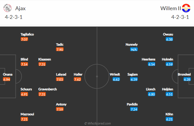 Đội hình dự kiến Ajax vs Willem II