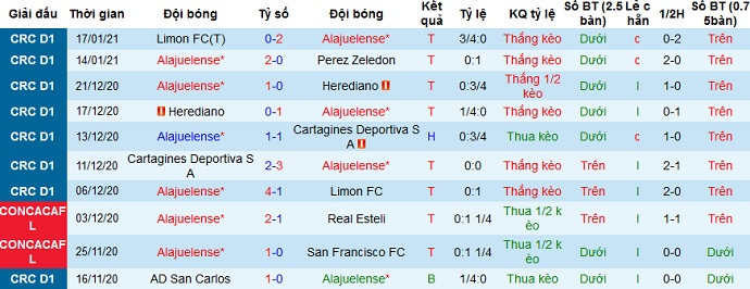 + Thống kê 10 trận gần nhất của Alajuelense