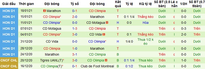 Trong 5 trận gần nhất Olimpia cũng có được 4 trận thắng và 1 trận hòa. Tuy nhiên trước đó Olimpia đã để thua và bị loại tại Concacaf Champions League nên phải xuống chơi tiếp tại Concacaf League từ vòng 1/8.