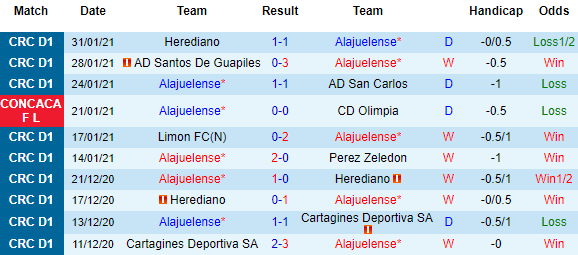 + Thống kê 10 trận gần nhất của Alajuelense