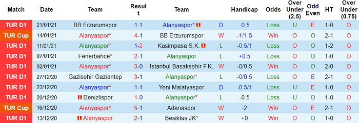 - Thống kê 10 trận gần nhất của Alanyaspor