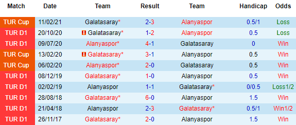 + Lịch sử đối đầu Alanyaspor vs Galatasaray