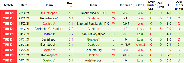 - Thống kê 10 trận gần nhất của Goztepe Izmir