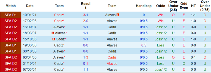 Phong độ và thống kê đối đầu Alaves - Cadiz
