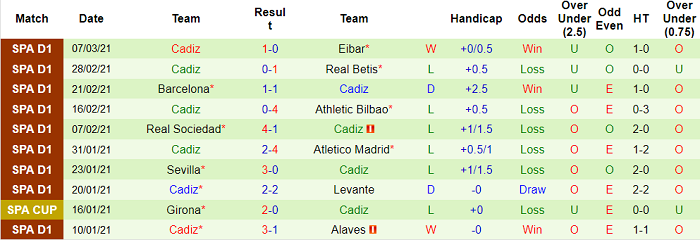 Trong khi đó, Cadiz vừa chấm dứt chuỗi 7 trận không thắng tại La Liga 2020/21 bằng việc đánh bại Eibar với tỷ số 1-0. Tuy nhiên, chiến thắng này không nói lên quá nhiều điều bởi Eibar vốn đang khủng hoảng. Trước khi thua Cadiz, Eibar không thắng cả 9 vòng liên tiếp và thua tới 6 trong số đó.