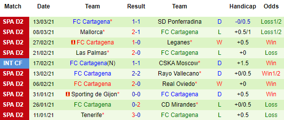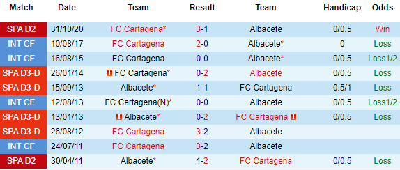 Cartagena thường xuyên xuất hiện ở giải hạng 3, nên nếu họ có xuống hạng thì cũng chẳng có gì bất ngờ. Xếp trên Albacete 2 bậc nhưng về điểm số, Cartagena chỉ hơn đối phương 1 điểm. Nhìn chung thì đây có thể coi là trận cầu then chốt trong cuộc chiến trụ hạng của đôi bên.