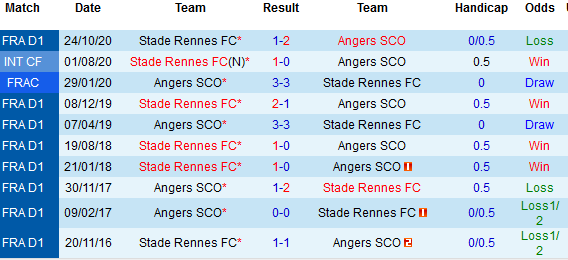 + Soi tỷ lệ kèo châu Á: Angers đang là điểm đến ưa thích của giới đầu tư châu Á khi họ toàn thắng kèo cả 3 trận sân nhà gần đây. Ngược lại, Rennes chỉ biết đến hòa và thua theo tỷ lệ châu Á 3 trận gần nhất.