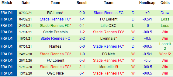 + Thống kê 10 trận gần nhất của Rennes