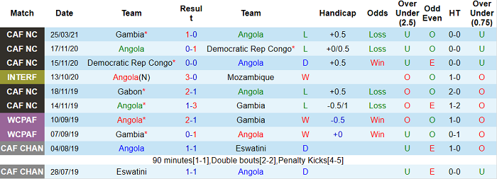 - Thống kê 10 trận gần nhất của Angola