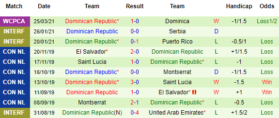 + Thống kê 10 trận gần nhất của CH Dominican