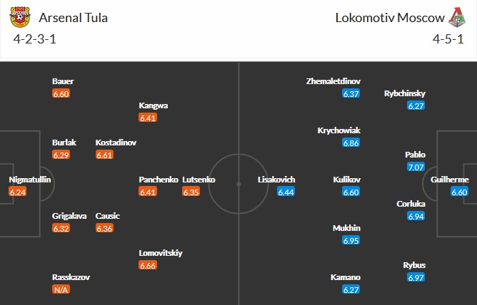 Đội hình dự kiến Arsenal Tula vs Lokomotiv Moscow