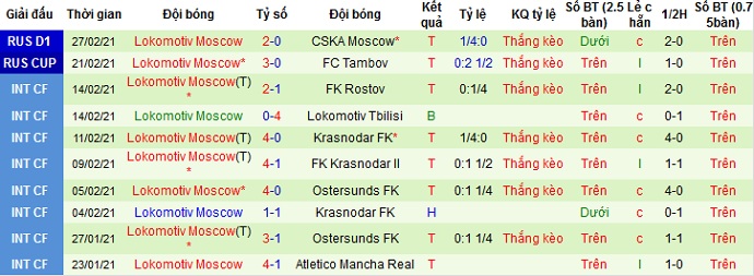 Tuy nhiên ở cả 7 lần gặp nhau trước đó giữa hai đội, phần thắng đều luôn thuộc về đội chủ nhà. Ngoài ra thành tích du đấu của Lokomotiv Moscow tại giải VĐQG là rất tệ khi chỉ hòa được 1 lần duy nhất, thua cả 4 trận trong 5 lần du đấu gần nhất. Thế nên chọn cửa dưới ở trận đấu này là hoàn toàn có cơ sở.