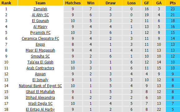 Trong khi ấy, Aswan thi đấu khá thất thường và mới có 9 điểm/9 trận, chỉ hơn vị trí nguy hiểm gần nhất có 1 điểm, cách biệt rất mong manh. Sau khởi đầu hoàn hảo với 2 chiến thắng mở màn, Aswan trải qua mạch 7 vòng liên tiếp chỉ biết hòa với thua.