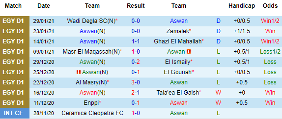 + Soi tỷ lệ kèo châu Á: Tuy chỉ mới thăng hạng nhưng Ceramica Cleopatra chơi rất ổn và tỷ lệ thắng kèo của họ ngang ngửa với Aswan. Ở lần đối đầu duy nhất là trận giao hữu hồi cuối tháng 11/2020, Ceramica Cleopatra đã giành chiến thắng.