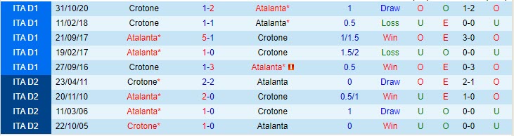 Kịch bản Atalanta giành thắng lợi cách biệt càng có căn cứ khi họ từng vùi dập Crotone với tỷ số 5-1 ở lần gần nhất tiếp đón đối thủ trên sân nhà Gewiss. Rộng hơn, họ thắng cả 4 trận đối đầu trước Crotone trên sân nhà, ghi 9 bàn và chỉ thủng lưới 1 lần.