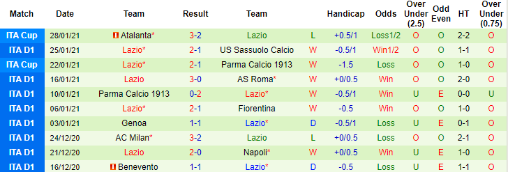 + Thống kê 10 trận gần nhất của Lazio