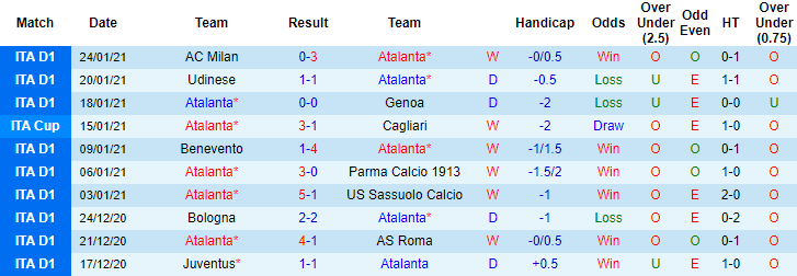 + Thống kê 10 trận gần nhất của Atalanta